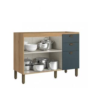 O BalcãoTHB Finesse combina funcionalidade e inteligência, oferecendo um balcão com amplo espaço para armazenar seus objetos e alimentos. As portas possuem um sistema de fechamento suave, evitando batidas indesejadas. As gavetas, equipadas com trilhos telescópicos, proporcionam uma abertura ampla e suave. O balcão conta com prateleiras removíveis, puxadores tipo concha e um sistema de montagem com parafusos e cavilhas. Estrutura em MDP de 15mm, enquanto os fundos do módulo e das gavetas são feitos de MDF de 3mm.