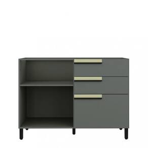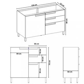 Características: 2 Portas, sendo uma porta temperos 3 Gavetas Acabamento pintura UV Corrediças telescópicas Dobradiças caneco 35MM com amortecimento Estrutura em MDP 15mm Fixação com minifix Puxadores em madeira Pés c/ sapata regulável plástica