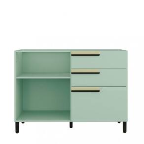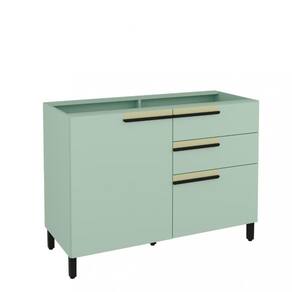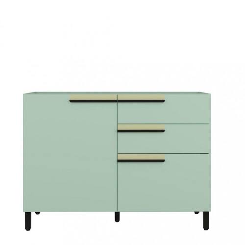 Características: 2 Portas, sendo uma porta temperos 3 Gavetas Acabamento pintura UV Corrediças telescópicas Dobradiças caneco 35MM com amortecimento Estrutura em MDP 15mm Fixação com minifix Puxadores em madeira Pés c/ sapata regulável plástica