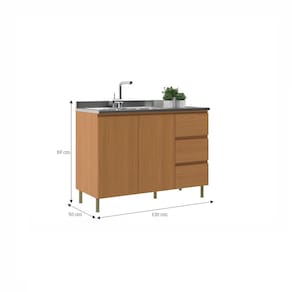 Características: Estrutura MDF 2 Portas 3 Gavetas Corrediças telescópicos Pés com regulagem de altura Acabamento em pintura UV Obs.: não acompanha pia nem tampo Prateleira