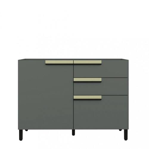 Caracteristicas: 2 Portas, sendo uma porta temperos 3 Gavetas Acabamento pintura UV Corredicas telescopicas Dobradicas caneco 35MM com amortecimento Estrutura em MDP 15mm Fixacao com minifix Puxadores em madeira Pes c/ sapata regulavel plastica