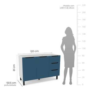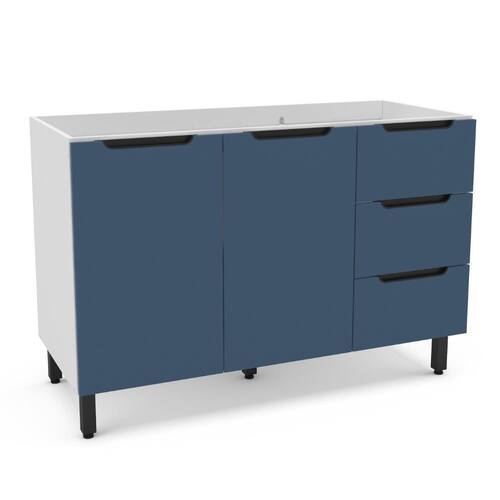 Características: Estrutura MDP 2 Portas 3 Gavetas 1 Prateleira Corrediças telescópicas Acabamento FF Pintura UV Gavetas suporta até 3kg Prateleira Suporta até 5kg distribuídos Não acompanha Tampo ou pia