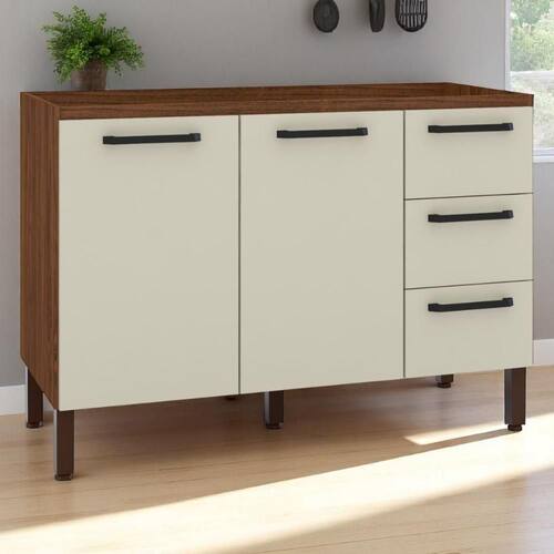 O Balcão possui 2 portas e 3 gaveta, destaca-se por sua praticidade e eficiência de uso, podendo ser utilizada como complemento de cozinha.
