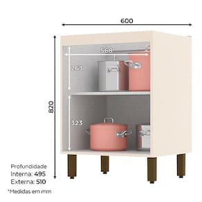 Balcão 2 Portas 60 cm Connect Off White - Henn