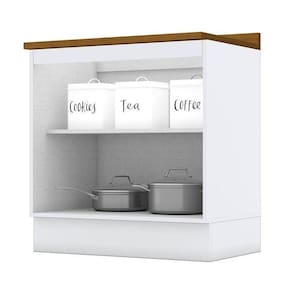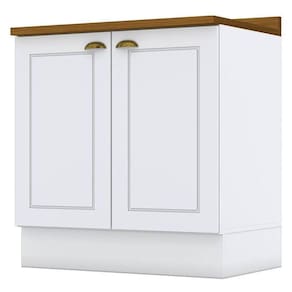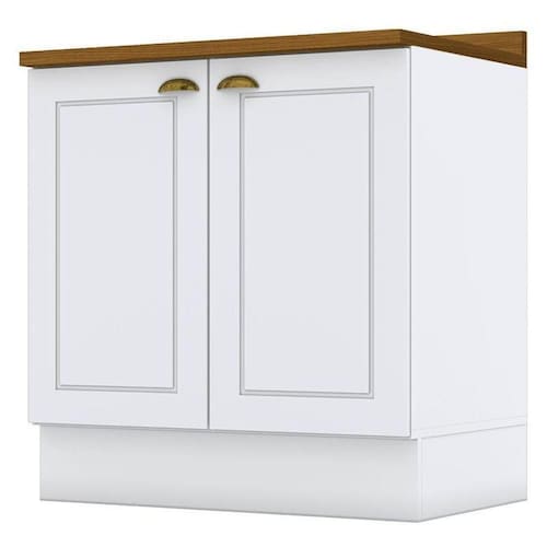Balcão 2 Portas 80 cm Americana Branco com Tampo Nature Henn