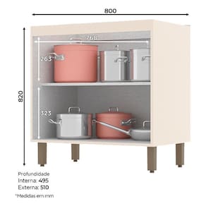 Balcão 2 Portas 80 cm Connect Off White - Henn