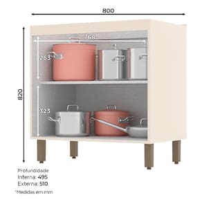 Balcão 2 Portas 80 cm Évelin Off White - Henn
