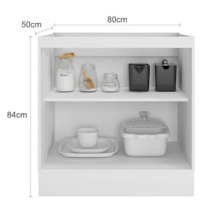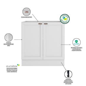 Balcão 2 Portas 80 Cm Sem Tampo Unna Poliman Branco O Balcao 2 portas cooktop sem tampo Unna da Poliman Moveis e um produto elegante ideal para ser utilizado como balcao tampo ou balcao cooktop. Sao 2 portas de bater com dobradicas reforcadas de 35mm e prateleira interna removivel com espaco para acomodar botijao de gas e utensilios maiores, tampo vendido separadamente, possui puxadores modelo retro em polimero com acabamento em alta cobertura para deixar seu movel ainda mais elegante, contem pes em PVC regulaveis ao piso de 14,5 cm que permitem o nivelamento perfeito, tambem acompanha rodapes removiveis com presilhas modelo click que facilita na hora de fazer a limpeza. Estrutura em MDP Perffect Touch de maior resistencia e com protecao Bacterban que inibe a proliferacao de fungos e bacterias na superficie do movel, as portas sao almofadadas/molduradas em MDF inspiradas nas classicas cozinhas . Produto ecologicamente correto com embalagens preparadas para evitar e permitir que o produto chegue em perfeito estado em sua casa. Perfeita combinacao com os mais variados ambientes. Qualidade que so a Poliman oferece em seus produtos. Dimensoes: Altura: 83,5 cm Largura: 80 cm Profundidade: 50 cm Peso: 20,7 Kg