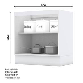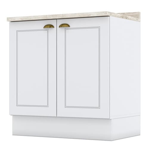 Balcão 2 Portas 80cm Americana Branco com Tampo Calcare - Móveis Henn