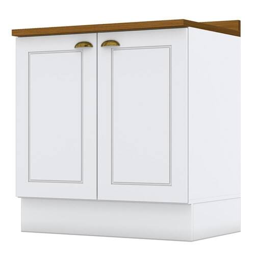 Balcão 2 Portas 80cm Americana Branco Com Tampo Nature - Móveis Henn Branco/nature Balcão 2 Portas 80cm Americana com Tampo - Móveis Henn O Balcão Americana é ideal para você que busca um ambiente com estilo e beleza contemporânea, ele auxilia na organização da sua cozinha. O Balcão 2 Portas faz parte da linha de cozinha modulada Americana da Henn com mais de 15 módulos que possibilitam criar o projeto de cozinha dos seus sonhos. ESPECIFICAÇÕES: - Estrutura em 100% MDF - Pintura UV fosca - 2 Portas - Dobradiças de 35mm com amortecimento - Puxadores em zamac ouro velho - Usinagem em baixo relevo - Acompanha tampo