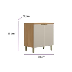 Características: 4 Pés plásticos com sapata reguladora 2 Portas 1 Prateleira Detalhe chanfrado Dobradiças metálicas com amortecedor caneca 35mm Estrutura 100 em MDF 15mm Peso total suportado 80kg Puxadores de plástico Sistema de montagem cavilhas, parafusos e minifix Tampo chanfrado em MDF 25mm