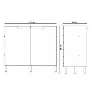Caracteristicas: 1 Prateleira 2 Portas Acabamento pintura UV Acompanha cavilhas e parafusos Dobradicas caneco 35MM com amortecimento Estrutura em MDP 15mm Fixacao com minifix Pes c/ sapata regulavel plastica Puxadores em madeira