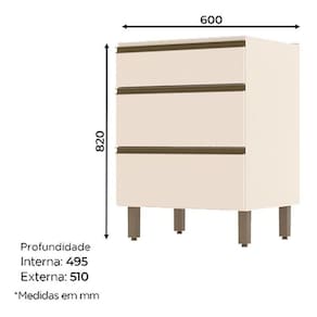 Balcão 3 Gavetas 60 Cm Connect Off White Henn