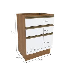 Produzido 100% em MDF de 15mm, o que garante mais robustez, firmeza e qualidade, ele conta com 88cm de altura, 60cm de largura e 52cm de profundidade, além de muita praticidade para ser utilizado em todos os projetos de cozinha. Versátil, ele possui amplo espaço, e com duas gavetas e um gavetão, com corrediças telescópicas, você organiza talheres e outros mantimentos para facilitar seu dia a dia.
