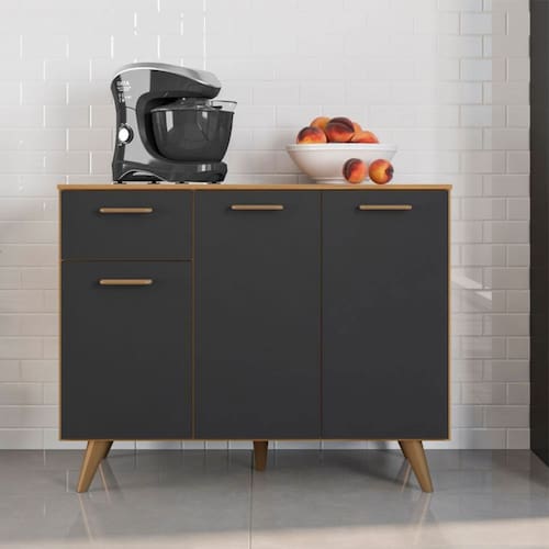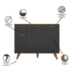 Balcão 3 portas 1 gaveta com tampo Olinda - Preto
