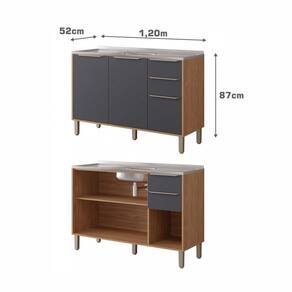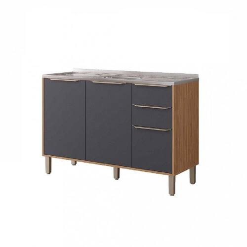 Balcão 3 Portas 2 Gavetas 120cm sem tampo Divina MGM Móveis - Cinza