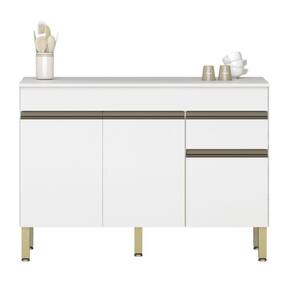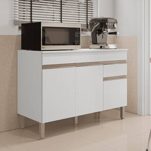 O Balcão possui 3 portas e 1 gaveta e 1 tampo incluso, destaca-se por sua praticidade e eficiência de uso, podendo ser utilizada como complemento de cozinha.