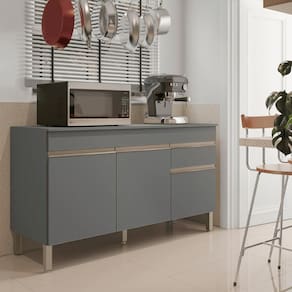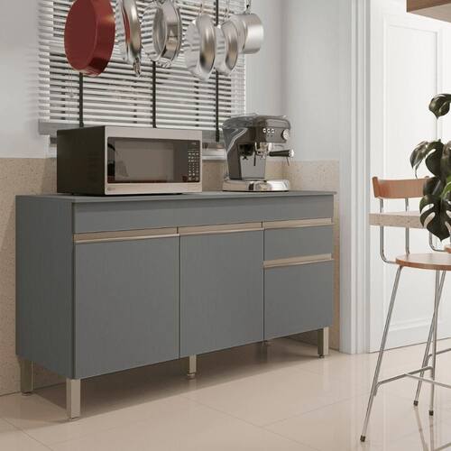 O Balcão possui 3 portas e 1 gaveta e 1 tampo incluso, destaca-se por sua praticidade e eficiência de uso, podendo ser utilizada como complemento de cozinha.