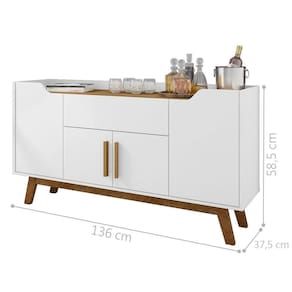 Com um design retrô, ele possui 1 gaveta, 4 portas e 2 prateleiras internas, ideal na organização de bebidas, taças, objetos de decoração e muito mais.