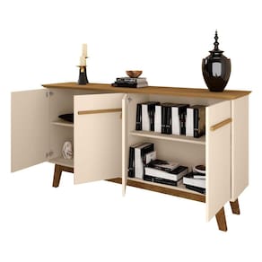 Com um design retrô, ele possui ainda nicho interno com amplo espaço, 4 portas e 2 prateleiras internas, sendo uma delas ajustável e até removível!