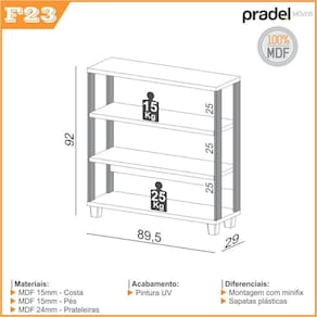 A Pradel traz o balcão industrial F23 JPF, disponível na cor Freijó com Preto Fosco. O móvel é composto por 4 prateleiras e é ideal para auxiliar na organização dos seus ambientes ou ainda para complementar a decoração da sua casa. O balcão com prateleiras F23 possui estrutura 100% MDF e pintura UV, com um excelente acabamento proporcionando uma maior durabilidade ao móvel.Linha ou Coleção - IndustrialComprimento - 89,5 cmLargura - 29 cmAltura - 92 cmCor - Freijó/PretoAcabamento - Pintura UVMaterial - MDFMaterial da Prateleira - MDFDistância entre prateleiras - 32 cmCapacidade - 15 kgPossui prateleiras - SimPossui Porta - NãoNecessita montagem - SimSistema de montagem - MinifixAmbiente - EscritórioMais Informações - Sapatas PlásticasRecomendações de Uso - Pano umedecidoMarca - Dalla CostaEscala de Brilho - FoscoMaterial dos Pés - MDFMaterial da Prateleira - MDFOrigem do Produto - NacionalItens Inclusos - 1 Balcão, Kit Ferragens e Manual de MontagemPossui Gavetas - NãoPossui Iluminação - NãoPeso - 16,30 kgPossui Vidro - NãoGarantia - 6 meses para vícios ou defeitos e fabricação