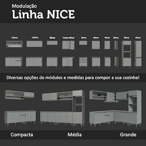 Os puxadores em alumínio na cor titanium e as corrediças telescópicas de abertura total facilitam o acesso ao conteúdo das gavetas. Os pés em PVC garantem a estabilidade do móvel e facilitam a limpeza.