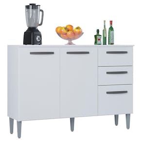 Balcão 507 3 Portas e 2 Gavetas com Tampo Branco - Poquema