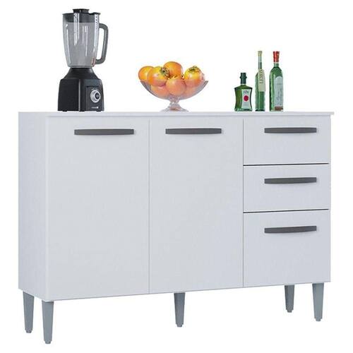 Balcão 507 3 Portas e 2 Gavetas com Tampo Branco - Poquema