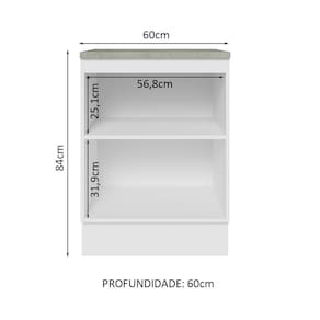 O Balcão de 60 cm da linha Lux da Madesa se destaca por ser prático e a ótima profundidade oferece espaço para organizar utensílios, louças e mantimentos. É muito útil para aumentar a capacidade da sua cozinha.