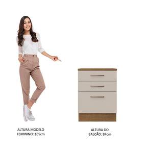 Este balcão de 60 cm da linha Agata da Madesa conta com três gavetas, sendo a última mais profunda. É perfeito para ampliar sua cozinha e organizar as louças e utensílios.