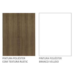 O acabamento da estrutura branco e o da porta é em Branco Veludo. O processo é feito em Pintura Poliéster ecológica, com 7 camadas que protegem o móvel contra os efeitos da água e do calor.