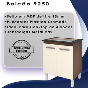 Balcão Com Tampo Para Cooktop 4 Bocas Jade, é ideal para quem busca qualidade e sofisticação para compor sua cozinha da forma que desejar. Estrutura em MDP de 12 e 15 mm, acabamento em pintura UV. Composto por 02 portas articuladas com dobradiças metálicas, puxadores em plástico cromado, tampo com espaço para fogão cooktop de 4 bocas (tampo já recortado), espaço para botijão de gás ou utensílios, possui uma prateleira interna removível, acompanham pés fixos de 16,5cm que garantem a firmeza que o móvel precisa, com regulagem de altura até 18 cm somente para nivelamento. Produzido com controle de qualidade e com excelente acabamento. Este móvel chegará em sua casa separado em 01 volume.