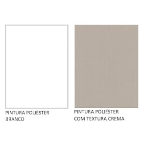 O acabamento da estrutura é branco e as portas são na coloração Crema. O método é exclusivo, feito em Pintura Poliéster ecológica com 7 camadas de proteção.