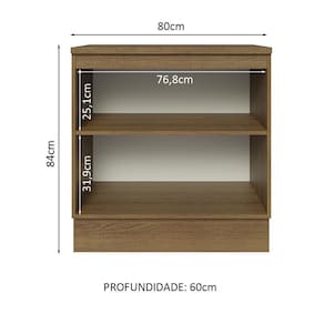 O Balcão de 80 cm da linha Lux da Madesa possui duas portas e ótimo espaço interno, ideal para organizar panelas, louças, mantimentos, eletroportáteis e muito mais. Possui puxadores em alumínio e corrediças telescópicas, diferenciais que proporcionam maior durabilidade ao produto.