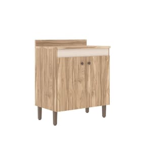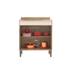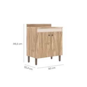 Dimensões: 99,5x80x52,3 cm (AxLxP) | Altura: 99,5 cm | Largura: 80 cm | Profundidade: 52,3 cm | Peso: 31,2 kg | Acabamento: Pintura UV | Cor Interna: Carvalho Oak | Acompanha tampo?: Sim | Tipo de porta: Bater | Tipo de dobradiça: Metálica | Quantidade de pés: 4 pés | Altura dos pés: 17 cm | Material dos pés: Polipropileno | Manutenção e limpeza: Utilize pano umedecido com água | Complexidade da montagem: Média: pode ser montado por mais de uma pessoa e|ou necessite de maior conhecimento para montagem | Material: MDP 15mm | Cor: Carvalho Oak e Cristalo | Quantidade de portas: 2 portas | Material do puxador: PP | Conteúdo da embalagem: 1 balcão, kit ferragens e manual de montagem