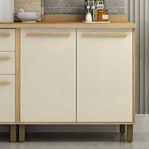 Bons móveis de cozinha, além de deixarem o cômodo mais bonito, também precisam nos ajudar a ter uma rotina mais prática, não é? Unindo funcionalidade e bom gosto, o Balcão Salvador veio para otimizar seu dia a dia. Enquanto as portas oferecem espaço para armazenar utensílios, potes ou outros itens necessários ao uso diário, o tampo dá apoio para o preparo de alimentos ou para acomodar um eletrodoméstico pequeno. Já o visual sóbrio torna esse móvel um curinga na decoração, pois é fácil de combinar com outros itens, como paneleiros e armários aéreos, e traz um charme extra para a decoração. Só benefícios para a sua cozinha dos sonhos! Suporta Granito: Não Acabamento da Prateleira: Pintura UV Escala de Brilho da Prateleira: Fosco Acabamento da Porta: Pintura UV Escala de Brilho da Porta: Fosco Material do Puxador da Porta: MDF Acabamento: Pintura UV Acabamento dos Pés: Pintura Acompanha Tampo: Sim Altura dos Pés: 13 Ambiente Principal: Cozinha Balcão Acompanha Pia: Não Complexidade da Montagem: Média: pode ser montado por mais de uma pessoa e/ou necessite de maior conhecimento para montagem Cor: Cinamomo/Off White Cor do Produto: Cinamomo/Off White Escala de Brilho: Fosco Itens Inclusos: 1 Balcão, Kit Ferragens e Manual de Montagem Manual de Montagem e Instalação: https://cdn2.madeiramadeira.com.br/atributo/valdemoveis/1234665-esquema-de-montagem-balcao-800-salvador.pdf Material da Dobradiça/Corrediça da Porta: Metálica Material da Porta: MDP Material da Prateleira: MDP Material do Tampo: MDP Material dos Pés: Plástico Medida do Tampo (L x C x E): 80cmx53cmx15mm Necessita Montagem: Sim Origem do Produto: Nacional Pés Reguláveis: Sim Peso: 25.8 Peso Máximo por Prateleira: 10 Possui Pés: 04 Possui Portas: 02 Possui recorte para Cooktop: Não Recomendações de Uso, Manutenção e Limpeza: Limpar com pano macio e levemente umedecido. Não utilizar solventes a base e de inflamáveis. Não utilizar produtos abrasivos. Sapatas Niveladoras: Não Sistema de Montagem: Parafusos. Suporta Até (kg): 20 Tipo de Dobradiça/Corrediça da Porta: 35 mm Tipo de Porta: Bater Tipo de Puxador da Porta: Externo