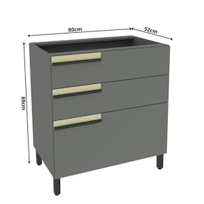 O Balcão 80cm Flórida possui estrutura 100% MDP. Com 3 gavetas, é versátil e multiuso, podendo ser utilizado sozinho ou com o restante da cozinha modulada Flórida. O móvel conta com corrediças telescópicas, que facilita a abertura das gavetas, permitindo que a gaveta saia totalmente do móvel, assim facilita a visualização de todo o conteúdo interno. Os puxadores são de madeira maciça. As bordas da frente são de PVC, que possui alta durabilidade não permitindo que lascas do material se soltem facilmente, protegendo também o móvel da umidade e outros impactos. Para completar e modernizar seu ambiente, a cozinha Flórida é a escolha certa! Suporta Granito: Sim Acabamento da Gaveta: Pintura UV Escala de Brilho da Gaveta: Semi-Brilho Material do Puxador da Gaveta: Madeira Maciça Acabamento: Pintura UV Acabamento dos Pés: Plástico Acompanha Tampo: Não Altura dos Pés: 12,5 cm Ambiente Principal: Cozinha Balcão Acompanha Pia: Não Cesto para Frutas: Não Complexidade da Montagem: Alta: deve ser montado por um montador especializado Cor: Grafite Cor do Produto: Grafite Cor Interna: Grafite Escala de Brilho: Semi-Brilho Espessura do Material da Estrutura: 15 mm Gaveta com Chave: Não Itens Inclusos: 1 Balcão 80cm e 1 Manual de Montagem Linha ou Coleção: Flórida Manual de Montagem e Instalação: https://product-hub-prd.madeiramadeira.com.br/912330/documents/e6ec4baa-0181-4dc2-9b98-eb359261b4bf2009480489017174210322411.pdf Material da Gaveta: MDP Material dos Pés: Plástico modular: Sim Necessita Montagem: Sim Origem do Produto: Nacional Pés Reguláveis: Não Peso: 33 kg Peso Máximo por Gaveta: 5 kg Possui Pés: 04 Possui Portas: Não Possui recorte para Cooktop: Não Recomendações de Uso, Manutenção e Limpeza: Recomenda-se a utilização de pano seco. Sapatas Niveladoras: Sim Sistema de Montagem: Parafuso e Minifix Suporta Até (kg): 15 kg Tipo de Corrediça da Gaveta: Telescópica Tipo de Puxador da Gaveta: Externo