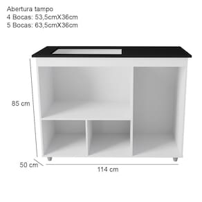Dimensões: Balcão Cooktop Ana Altura: 85 cm Largura: 114 cm Profundidade: 50 cm