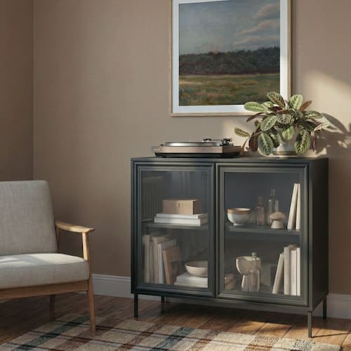 • As imagens são meramente ilustrativas; os objetos decorativos não acompanham o produto. Produto Montado: Sim Acabamento: BP Acabamento da Porta: BP Acabamento da Prateleira: BP Acabamento dos Pés: Pintura Altura dos Pés: 15 cm Altura Máxima dos Pés: 15.0000 Ambiente Principal: Sala de Estar codigo_ean: 7900288317599 Complexidade da Montagem: Média: pode ser montado por mais de uma pessoa e/ou necessite de maior conhecimento para montagem Cor: Preto Cor do Produto: Preto Cor do Tampo: Preto Cor dos Pés: Preto Cor Flex: Não Cor Interna: Preto Escala de Brilho: Fosco Escala de Brilho da Porta: Fosco Escala de Brilho da Prateleira: Fosco Espessura do Vidro: 3 mm Formato: Retangular Itens Inclusos: 1 Balcao Aparador, Kir Ferragens e Manual de Montagem Linha ou Coleção: Coleção Manual de Montagem e Instalação: https://product-hub-prd.madeiramadeira.com.br/361948246/documents/afccde19-f24d-422f-b9f7-c2ac743d2e13336358610717689292062801.pdf Marca: BRV Móveis Material da Porta: Vidro Material da Prateleira: MDP Material do Tampo: MDP Material dos Pés: Aço Material Principal: MDP Montagem Flex: Não Necessita Montagem: Sim Origem do Produto: Nacional Pés Reguláveis: Não Peso: 31,4 kg Peso Máximo por Prateleira: 15 kg Possui Adega: Não Possui Espelho: Não Possui Gavetas: Não Possui Pés: 04 Possui Portas: Sim Possui Prateleiras: Sim Possui Rodízio: Não Possui Vidro: Sim Quantidade de Portas: 2 Portas Quantidade de Prateleiras: 01 Prateleira Recomendações de Uso, Manutenção e Limpeza: Limpar utilizando apenas pano umedecido com água. Nunca utilizar produtos abrasivos ou esponjas de aço. Resistente à Chuva: Não Sapatas Niveladoras: Não Sistema de Montagem: Parafusos, cavilhas e minifix Suporta Até (kg): 45 kg Tipo de Dobradiça/Corrediça da Porta: Aço Tipo de Porta: Bater Tipo de Puxador da Porta: Não Possui