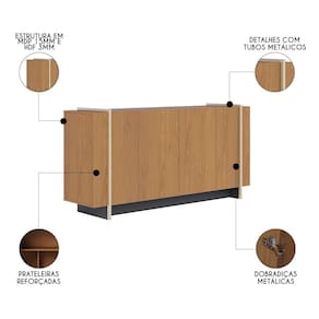O Balcão Aparador Buffet 4 Portas 160cm Copacabana Freijó/Dourado, da Colibri é perfeito para quem busca sofisticação na sala de estar ou sala de jantar. Com detalhes como os dois tubos metálicos que fazem referência ao estilo industrial, esse buffet 4 portas traz um toque contemporâneo ao ambiente ao combinar cores e materiais.
