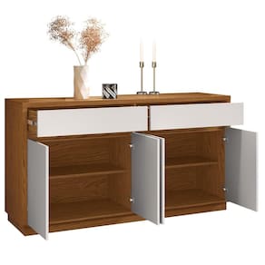 Também vale mencionar a qualidade desse buffet, uma vez que é fabricado 100% em MDF 15mm, 4 portas com dobradiças metálicas, 2 gavetas e acabamento com pintura UV, tudo para garantir maior durabilidade e resistência.