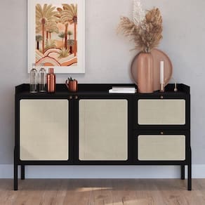 O Balcão Aparador Buffet Pés de Madeira Arlo A10 Hanover, da Mpozenato, é uma peça que combina funcionalidade e estética moderna de maneira exemplar.