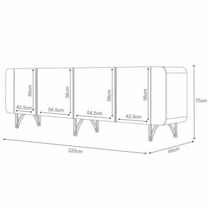 Ele possui cantos arredondados e amplo espaço interno, perfeito para guardar louças, talheres e outros objetos. O Buffet Aparador conta com 04 portas com dobradiças laterais e puxadores em alumínio com acabamento dourado, que conferem um toque de sofisticação ao produto. Além disso, ele possui um sistema de amortecimento para portas, que garante um fechamento suave e silencioso, evitando danos ao móvel e ao piso. Os pés em aço maciço em tom dourado são resistentes e harmonizam com o design do Buffet. O móvel é produzido em MDF e MDP de 15mm, materiais de alta qualidade e durabilidade. O Balcão Buffet é uma peça versátil e charmosa, que vai valorizar o seu ambiente com estilo e praticidade.