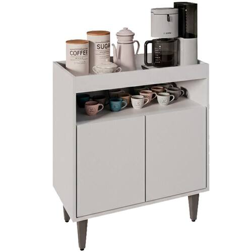 Balcão Aparador Alice, design que valoriza o ambiente no dia a dia! Estrutura em MDP 15 mm com acabamento BP. Possui portas com dobradiças metálicas e sistema de abertura passante, amplo espaço de armazenamento interno, nicho decorativo e tampo estilo bandeja, ideal para acomodar decorações ou utensílios diversos. Pés em plásticos (com regulagem) para maior estabilidade ao móvel. Produto será entregue em 01 volume.