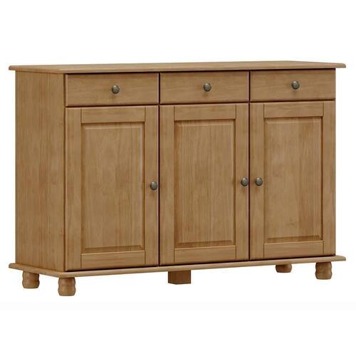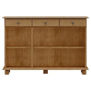 O Balcão Aparador Rubi da Finestra Móveis combina elegância e funcionalidade, sendo fabricado com estrutura em madeira maciça de pinus de reflorestamento e acabamento em pintura acetinada com verniz PU e UV. Conta com três portas equipadas com dobradiças com amortecimento e prateleiras internas em madeira maciça que suportam até 10kg distribuídos. Possui ainda três gavetas com corrediças telescópicas e capacidade para até 5kg cada, oferecendo amplo espaço para organização. Os puxadores metálicos em ouro envelhecido e os pés torneados em madeira maciça acrescentam um charme clássico ao design, tornando a peça ideal para salas de jantar, estar ou halls de entrada.