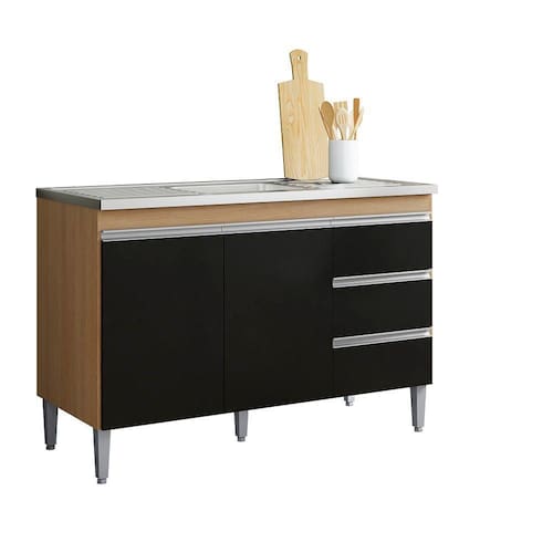 Balcão Armário de Cozinha Andréia 100cm Amendoa/Preto S/ Tampo - AJL Móveis