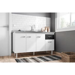 Balcão Armário de Cozinha Gabriela 150cm Branco/Preto S/Tampo - AJL Móveis