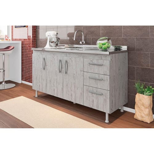 Balcão Armário de Cozinha Nathan 160cm Rústico S/ Tampo - Cinza