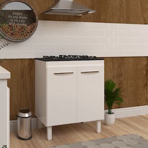 O Balcão Gabinete de cozinha para fogão Cooktop 5 Bocas Fran Mobília Decor é moderno, elegante, e vai dar um toque especial na sua cozinha. Ele conta com duas portas na frente e uma prateleira que pode ou não ser utilizada durante a montagem, podendo assim utilizar um botijão de gás dentro para economizar espaço na sua cozinha.