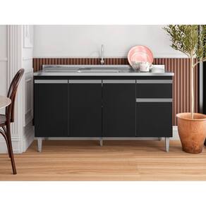 Balcão Armário de Cozinha Tatiane 150cm Preto S/Tampo - AJL Móveis